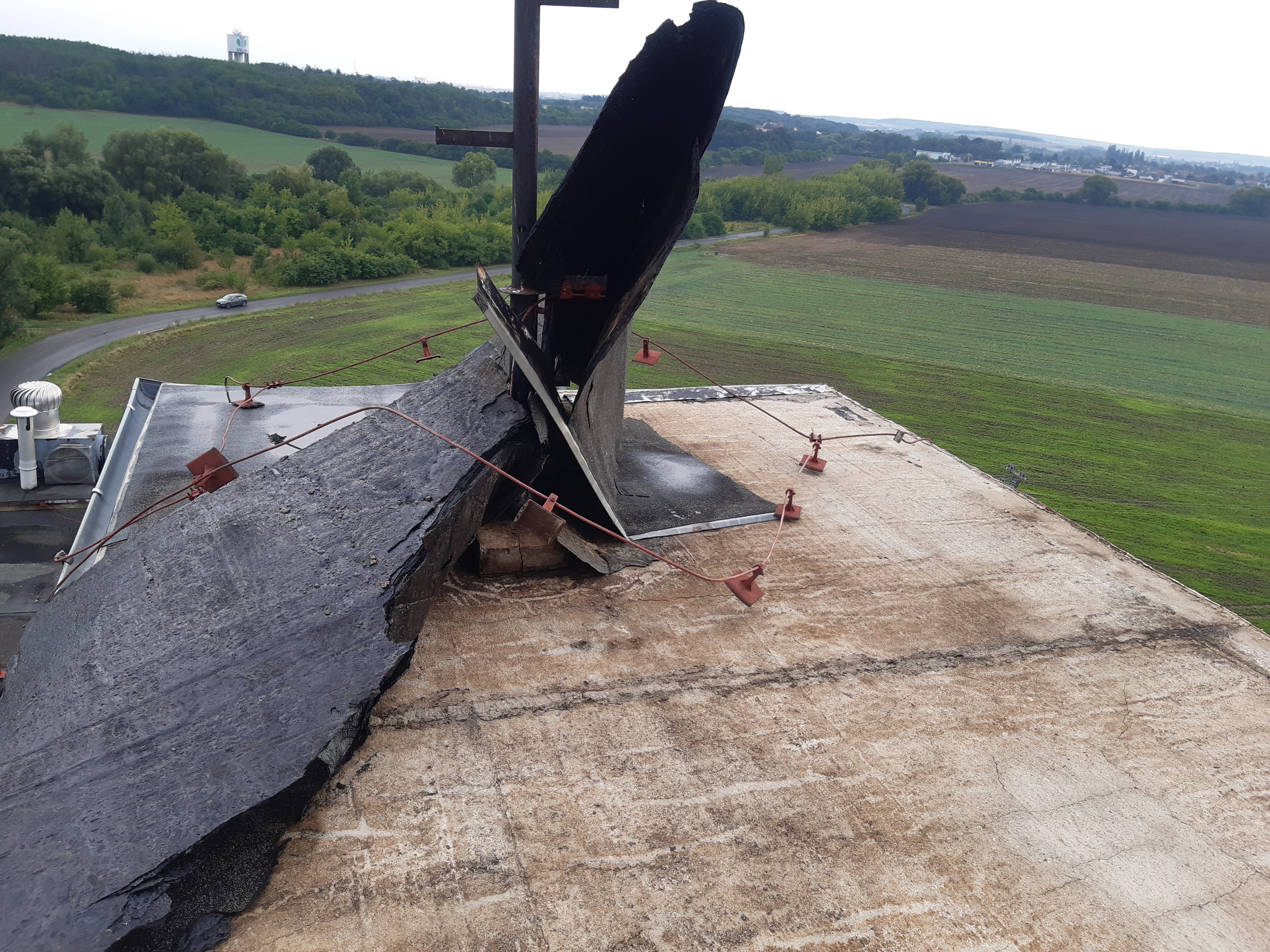 Utržená střecha na strojovně výtahu č.p. 1209 – 15. srpna: